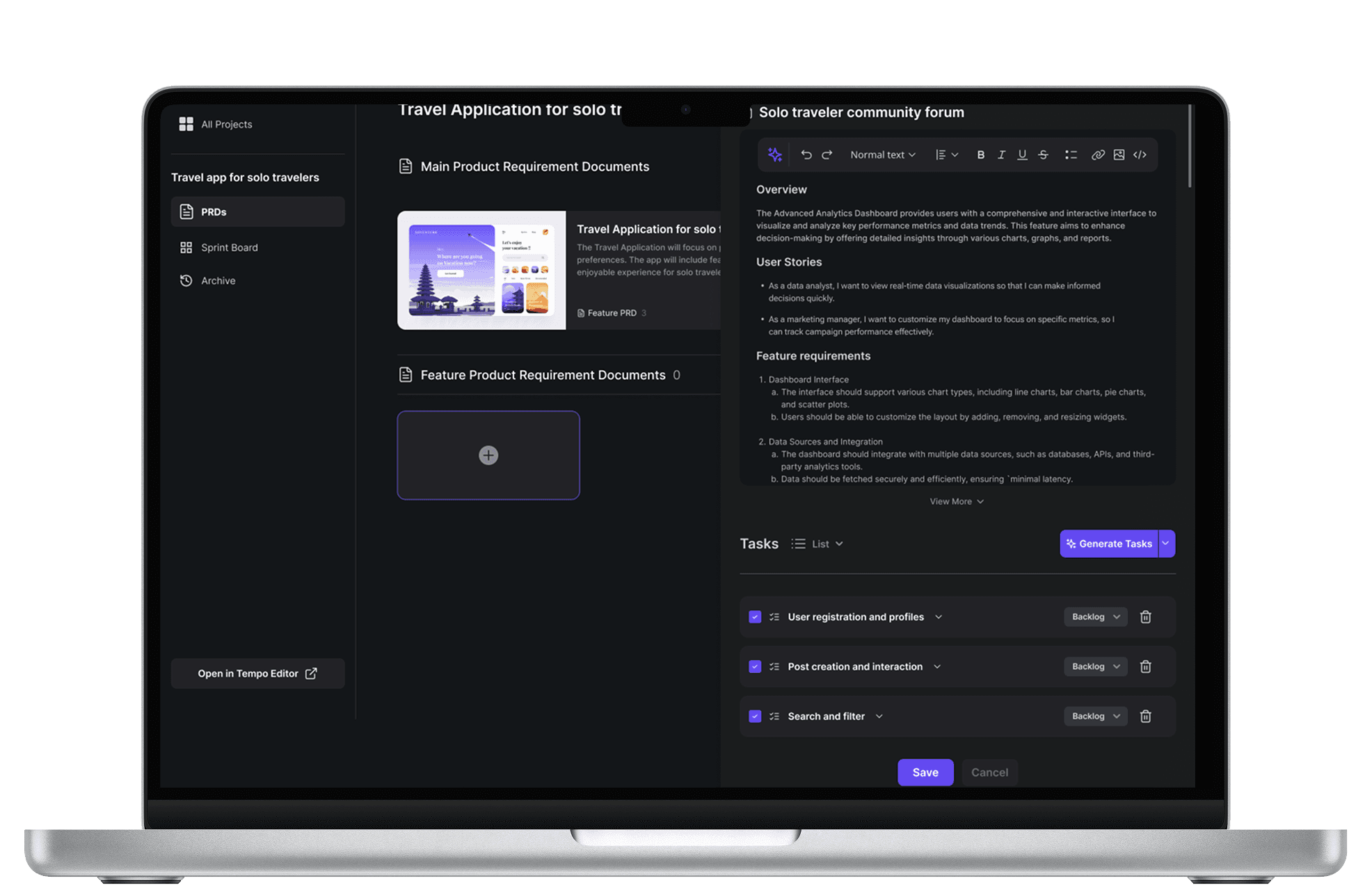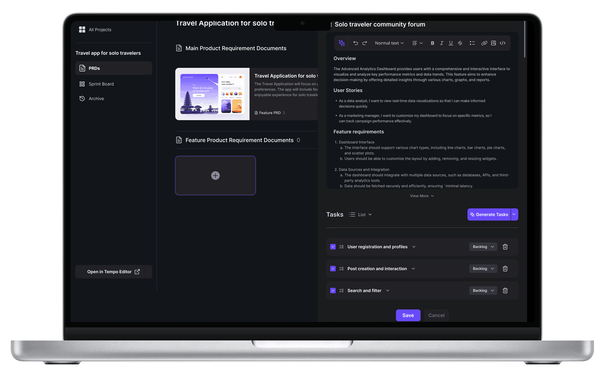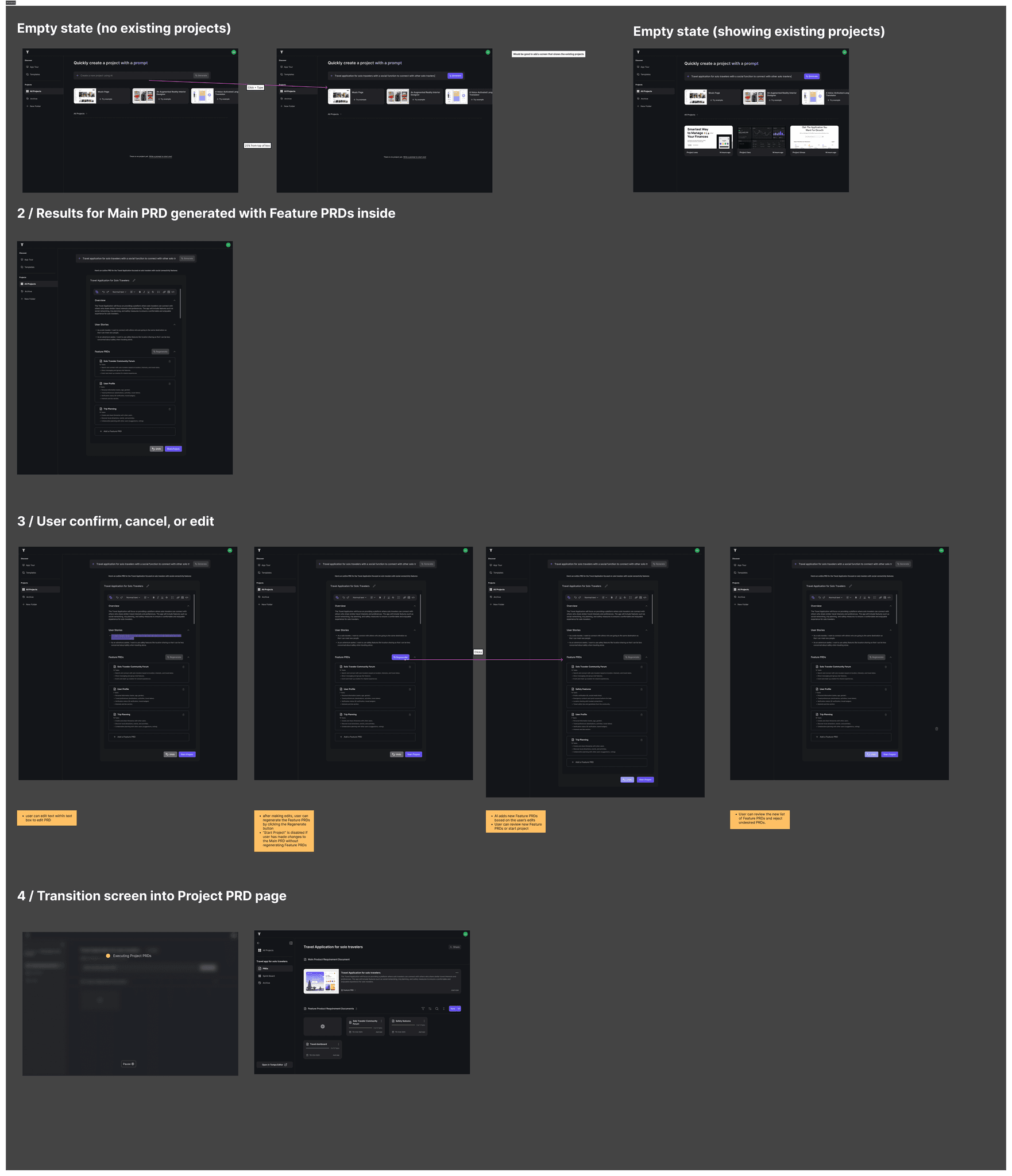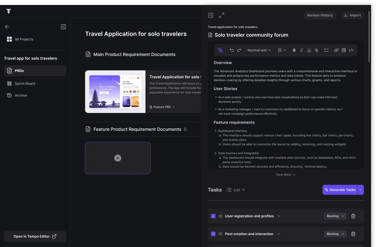 Previously, PRD generation and the sprint board were part of the same dashboard, but since they are separate tasks, this felt overwhelming and unfamiliar to users.