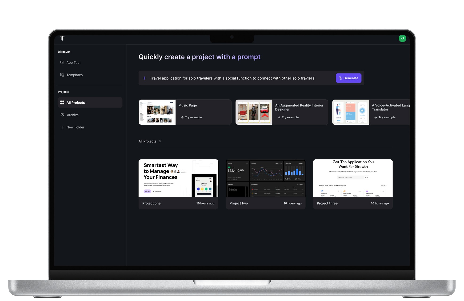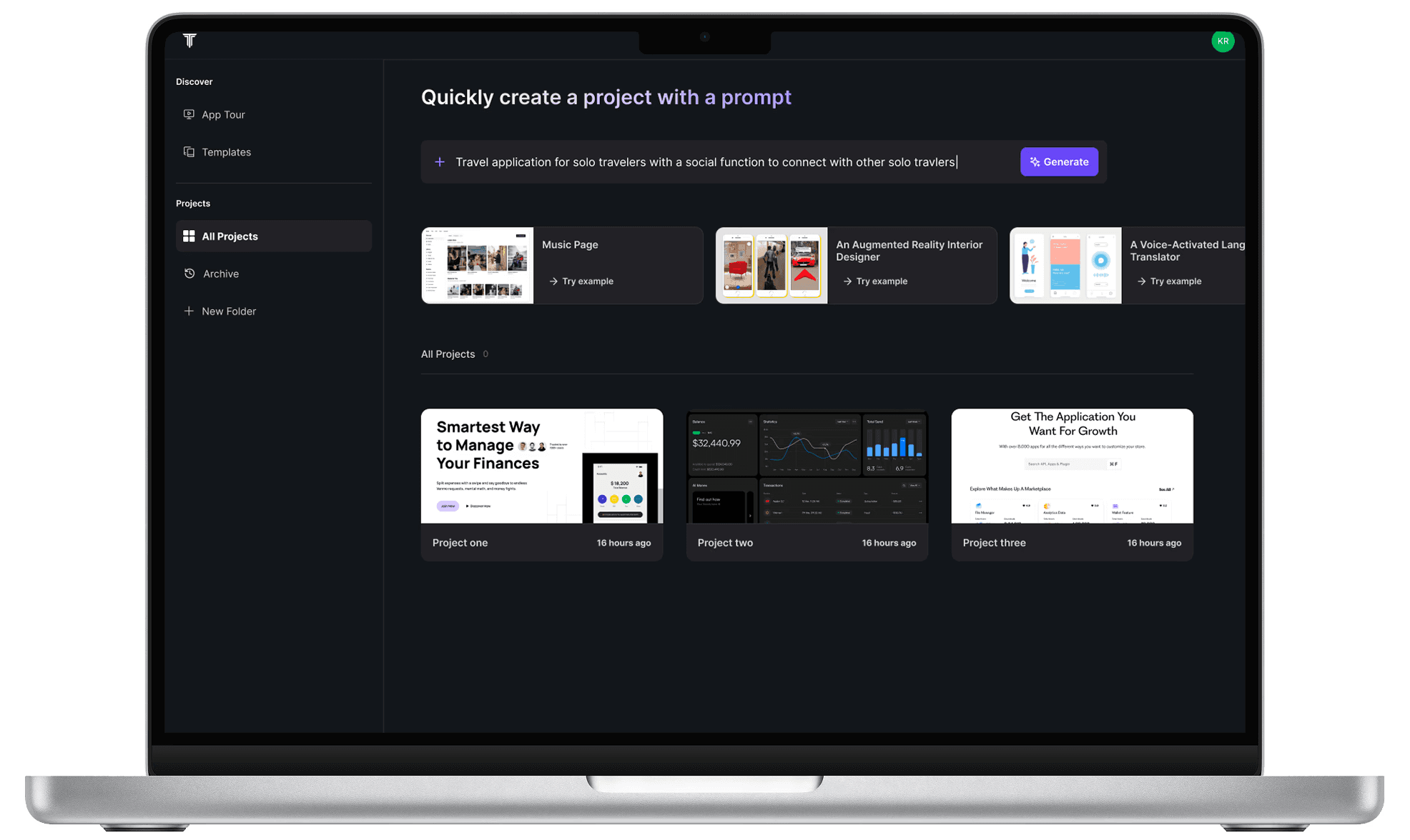 I redesigned the dashboard with better visual hierarchy, clearer AI prompt search text, and more intuitive card design making the "Try Example" feature feel more natural with less explanation.