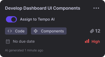 Tasks appear as tickets on the sprint board for collaboration, like Jira or Trello. The AI can execute tickets in the Tempo Editor, and once completed, they automatically update as 'done' on the sprint board.