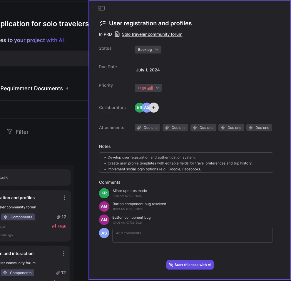 The AI simplifies complex feature PRDs by breaking them into specific tasks. Once approved, these tasks are added to the team’s sprint board for execution.